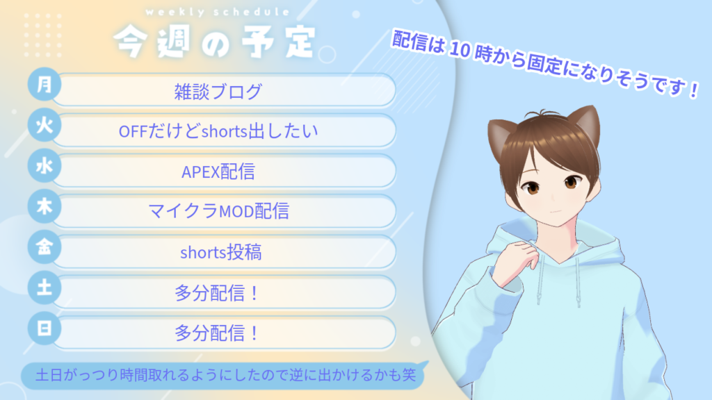 土日に配信したり活動したいので、もし土日なら都合いい!なんて方がいましたら覗いていってくれると嬉しいです!