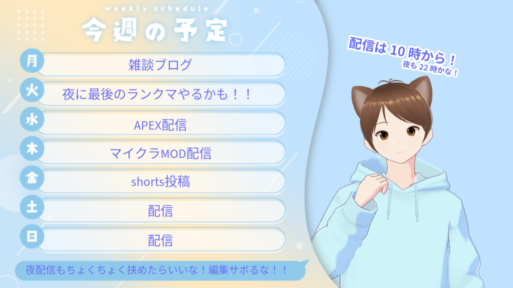 夜の時間ももしかしたら22時から配信することがあるかもですので、その時は遊びに来てください!